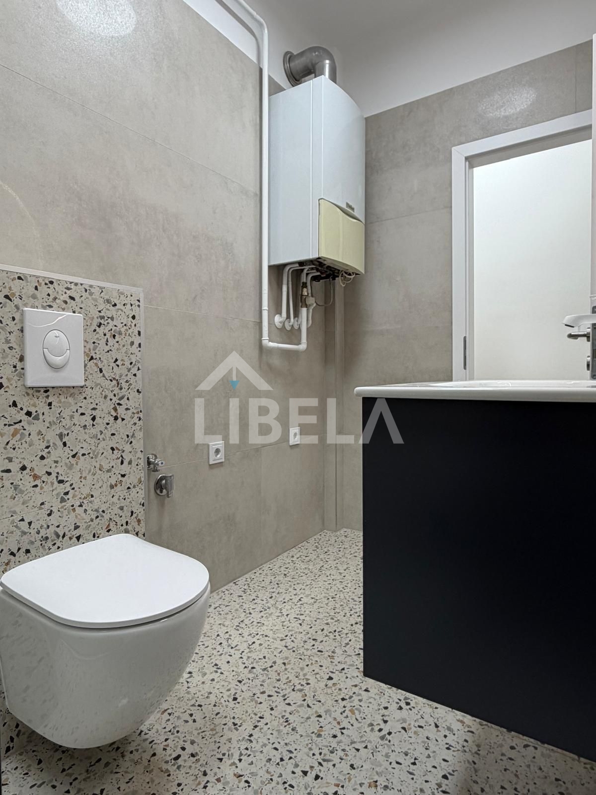 Prilikom adaptacije promijenjene su instalacije u cijelom stanu (struja i voda), postavljena nova protuprovalna vrata, PVC stolarija kao i sva nova sobna vrata, postavljen je višeslojni parket sa širokim bijelim lajsnama, potpuno nova kupaonica….