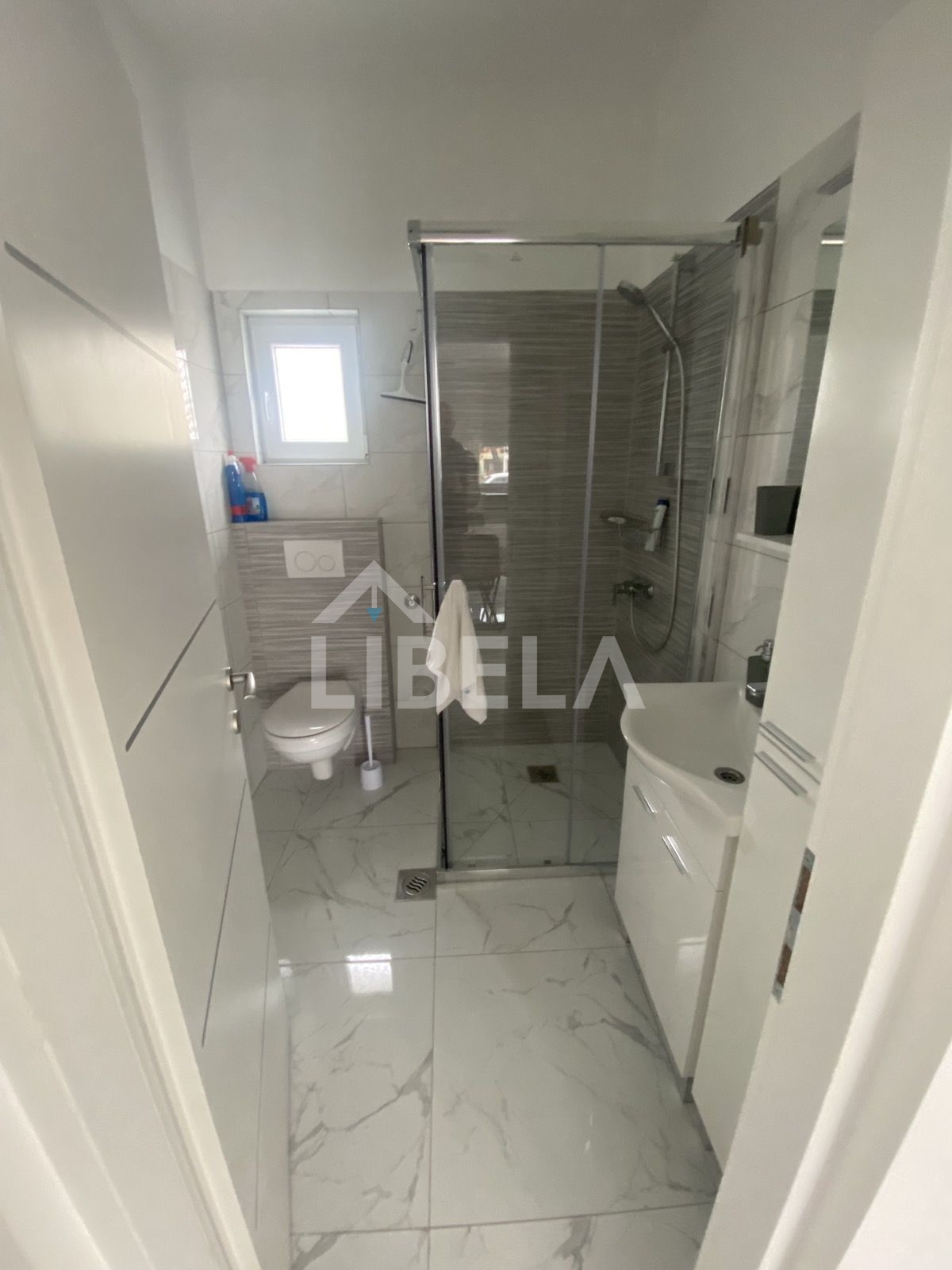 Apartman je trenutno u fazi “visoki roh-bau” iz razloga što novi vlasnik može birati dezene podova i pločica, a može se kupiti i u toj fazi po nižoj cijeni pa možete isti završiti sami prema vlastitim željama.