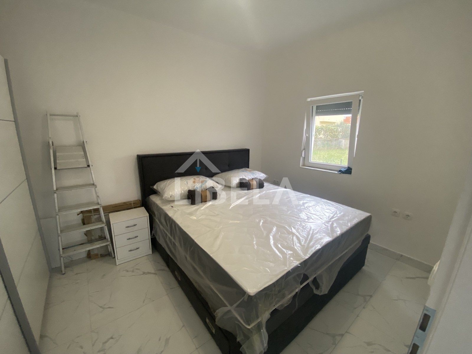 On the 1st floor of a building with a total of 6 apartments there is a two-bedroom apartment with a total area of 59 m². It consists of a kitchen with dining area and living room, two bedrooms, a bathroom and a terrace. It is located on the eastern part of the 1st floor, with the terrace oriented to the south. It comes with an outdoor parking space which is not included in the apartment’s square footage!