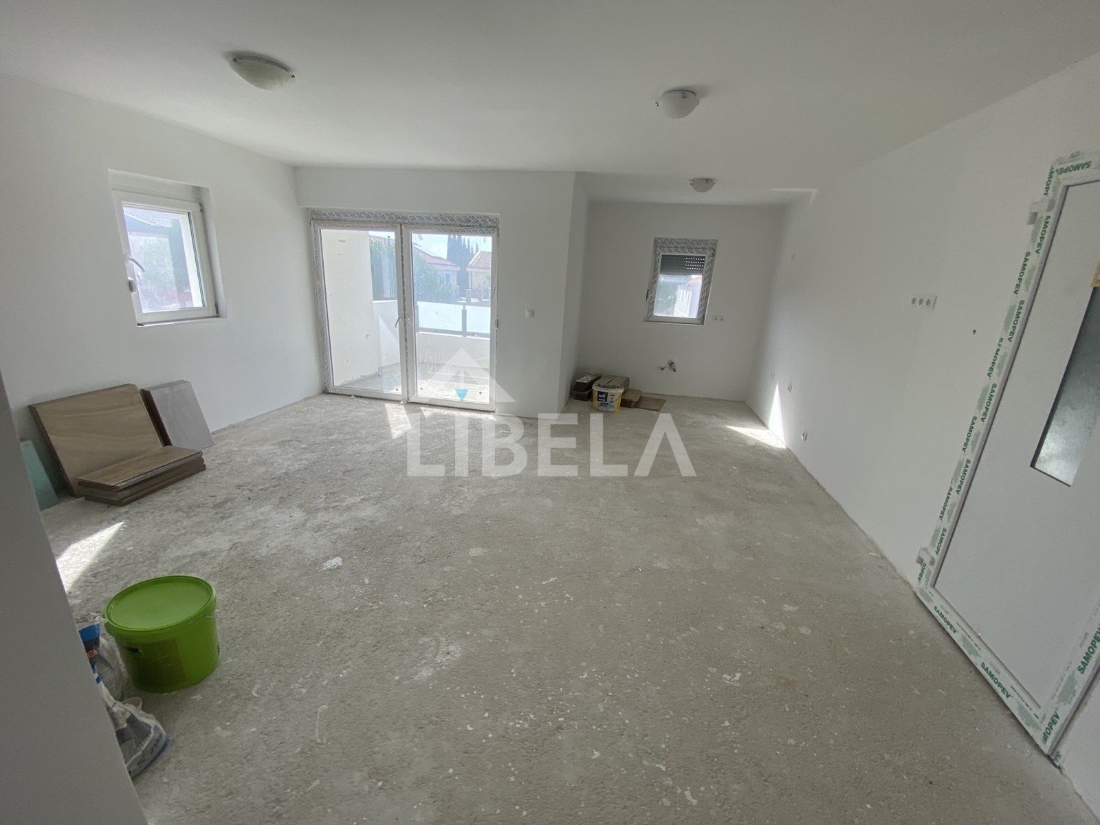 Apartman je trenutno u fazi “visoki roh-bau” iz razloga što novi vlasnik može birati dezene podova i pločica, a može se kupiti i u toj fazi po nižoj cijeni pa možete isti završiti sami prema vlastitim željama.