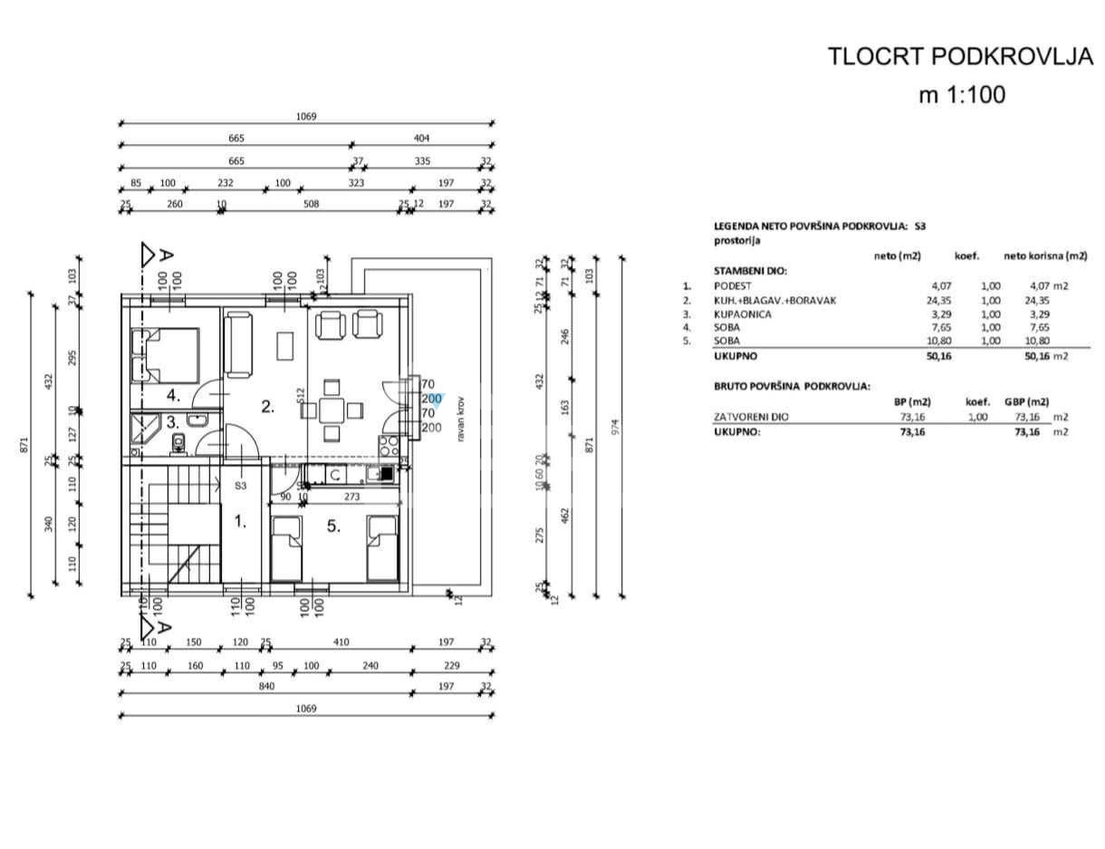 The total net floor area of the residential part is approx. 73m² (net usable area 50,16m²).