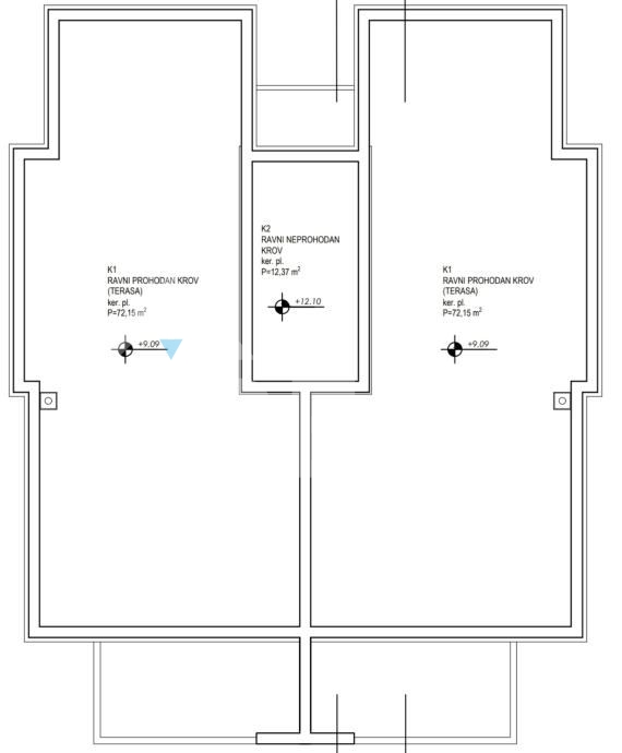 Nalazi se na drugom katu, a sastoji se od ulaza, dnevnog boravka s kuhinjom i blagovaonicom, 2 spavaće sobe, kupaonice te loggie iz koje se izlazi na 72 m2 veliku terasu, vašu privatno sunčalište s dovoljno prostora za jacuzzi ili roštilj.