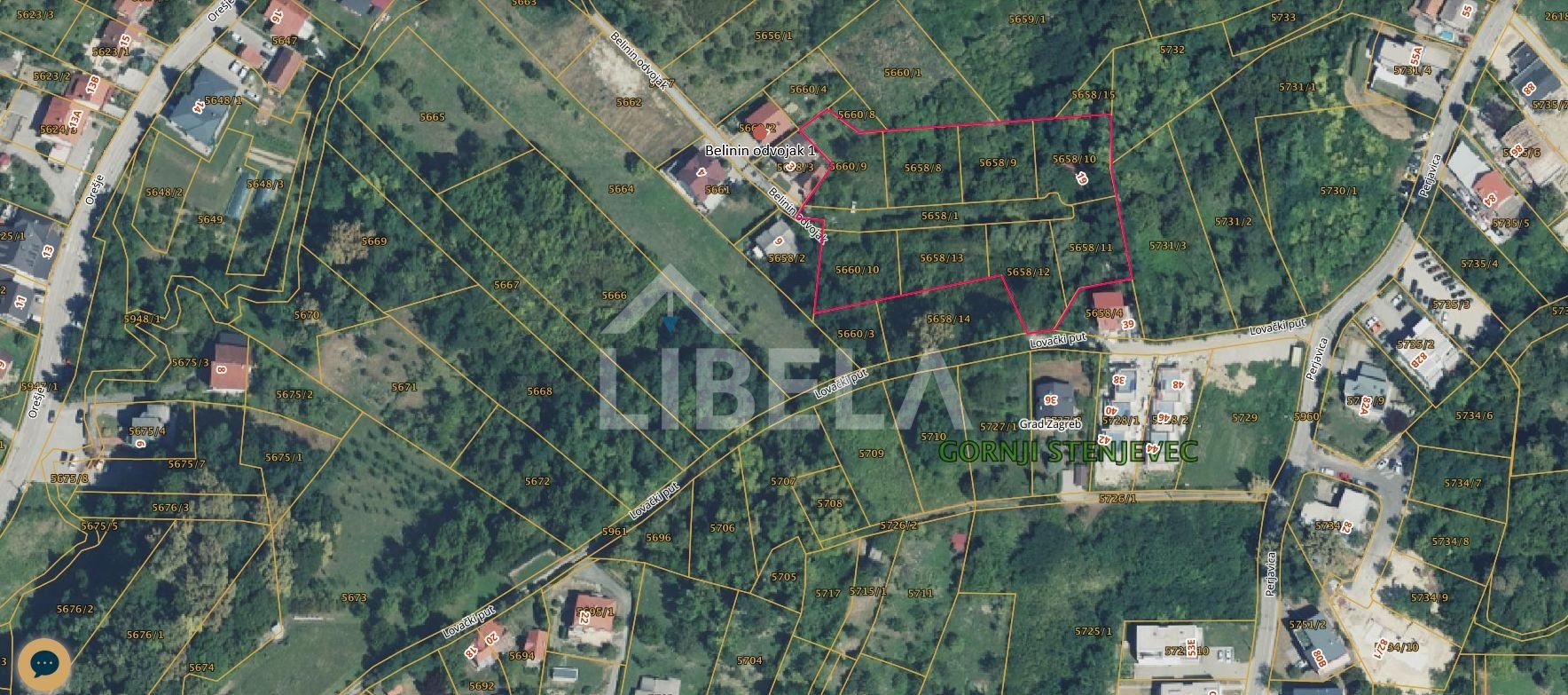 Zemljište se sastoji od 9 parcela, od kojih jedna otpada na pristupni put. Na ostalih 8 je dozvoljena gradnja, a prema GUP-u zemljište spada pod pravila 2.2. – Zaštita, uređenje i dogradnja zapadnog, središnjeg i istočnog djela podsljemenskog područja, prema kojem je moguća gradnja poluugrađenog objekta od 300m2 ili samostojećeg objekta veličine 400 BRP-a ukupne visine 2 nadzemne etaže + potkrovlje/uvučeni kat, sa smještajem 1 vanjskog i jednog garažnog mjesta unutar postojećih gabarita.