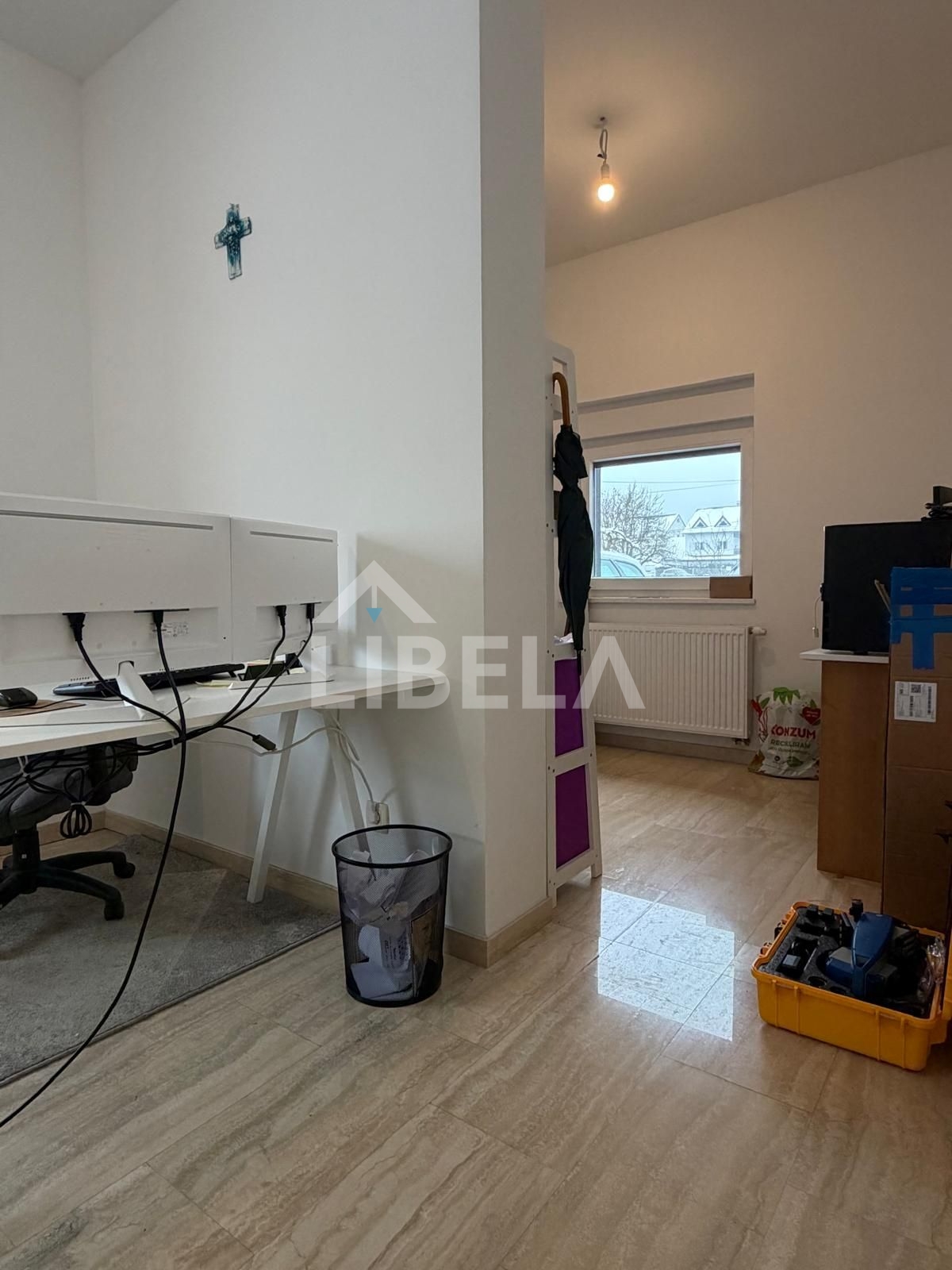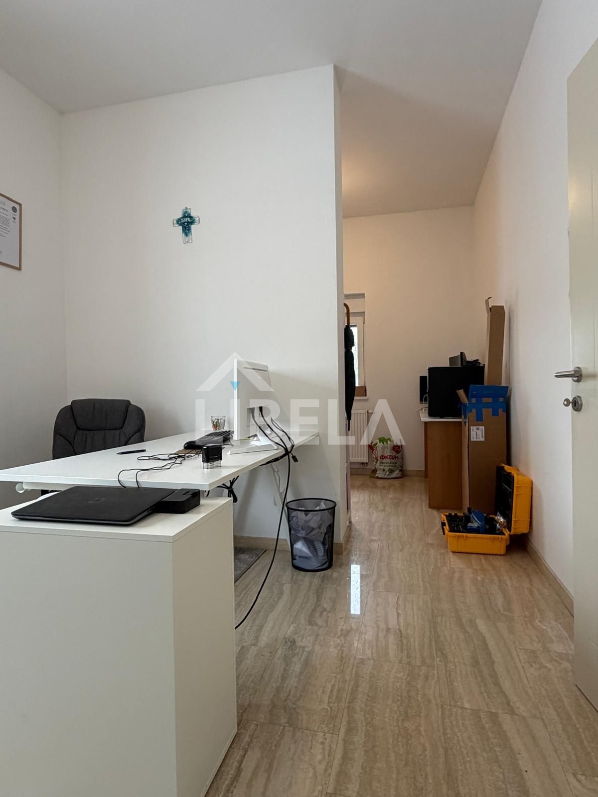Ured je orijentiran na dvorišnu stranu, grijanje je centralno etažno plinsko, PVC stolarija. U prostoru je ugrađen i klima uređaj.