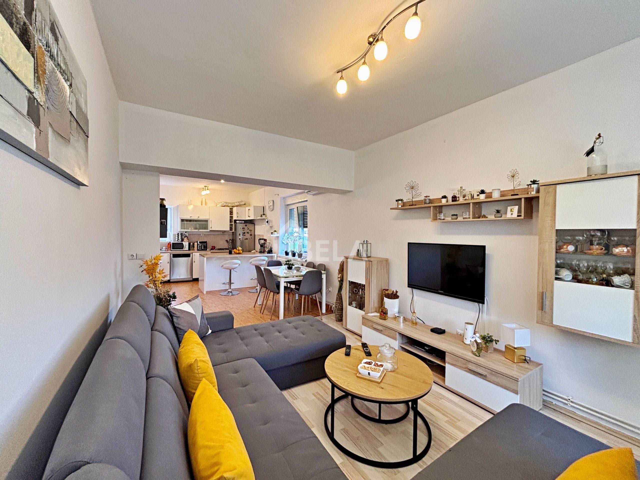 Prodaje se polunamješten trosoban stan ukupne prodajne površine 63,23 m2 u visokom prizemlju dvokatnice bez lifta.