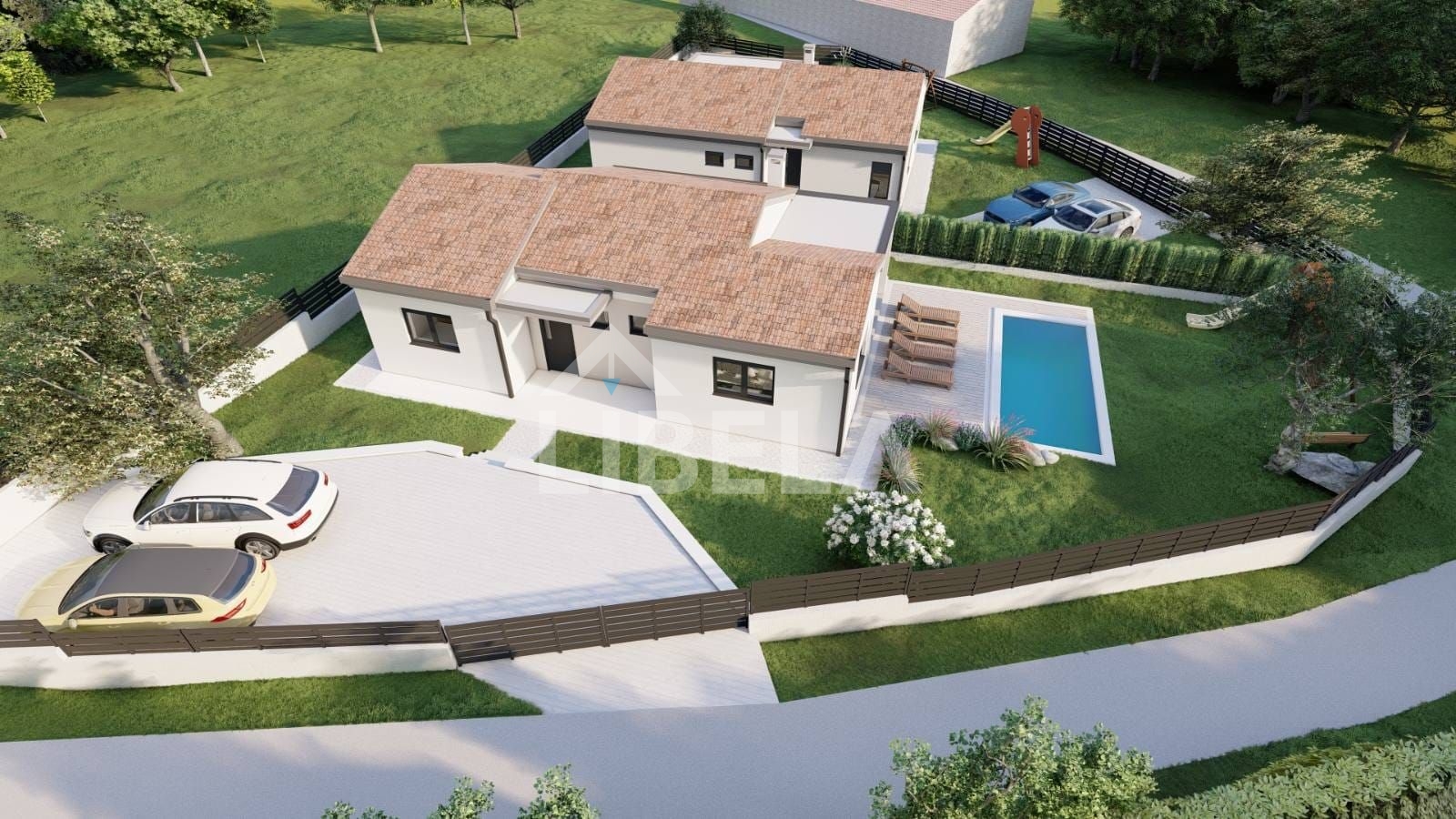 Kuća će biti opremljena podnim grijanjem, toplinskom pumpom i klima uređajem, što jamči ugodnu temperaturu tijekom cijele godine. Prodaje se u potpunosti dovršena i spremna za useljenje, s uređenom okućnicom i bazenom površine 26 m², dok namještaj nije uključen u cijenu.
