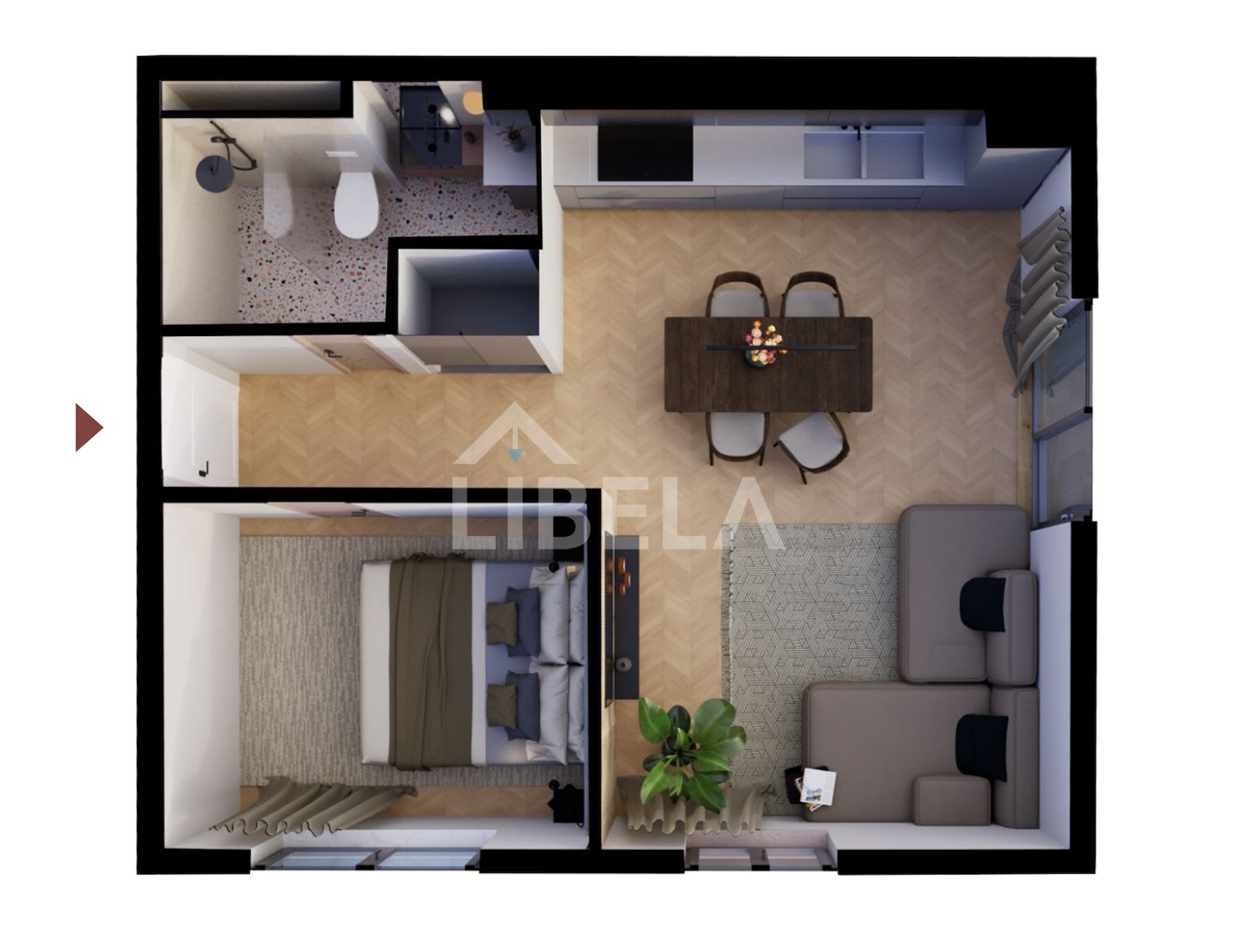 Prodaje se dvosoban stan površine 45,37m2 u prizemlju novogradnje s liftom. Ova moderna boutique zgrada ima 16 stanova na tri etaže, a nalazi se na Karlovačkoj cesti u neposrednoj blizini Arene Zagreb.