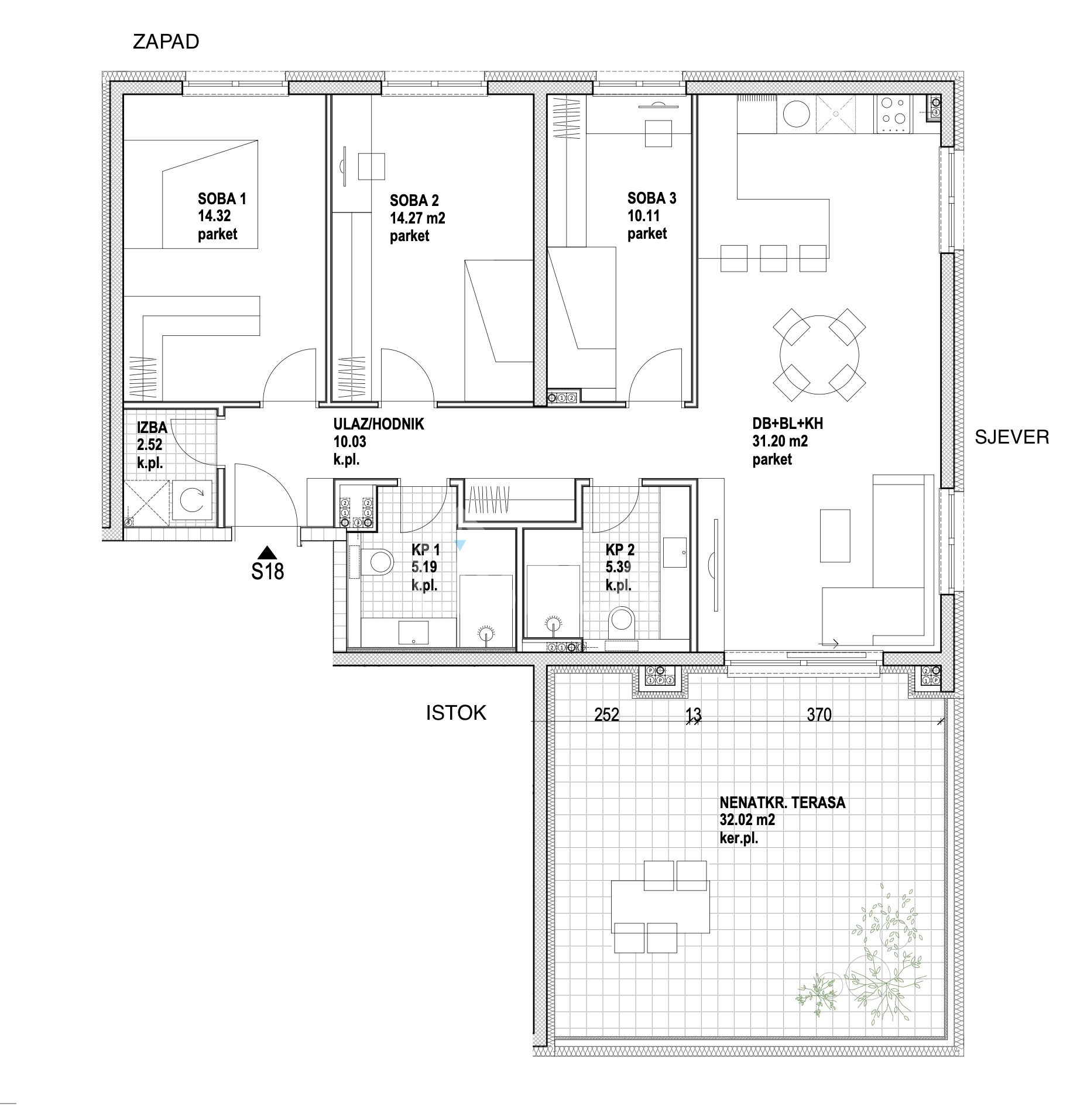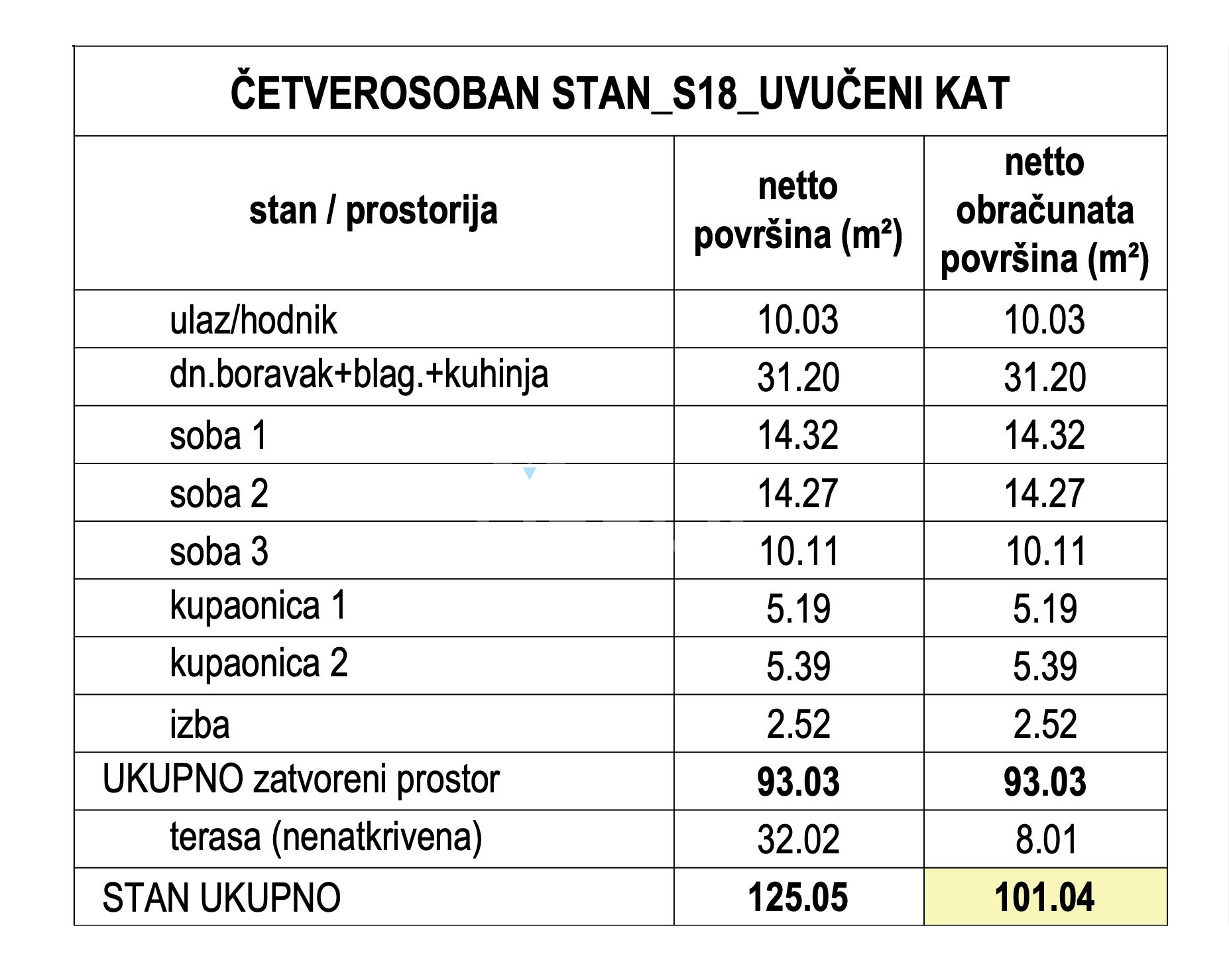 Prodaje se četverosobni stan s18 površine 102,64 m2 na 3. katu zgrade s liftom.