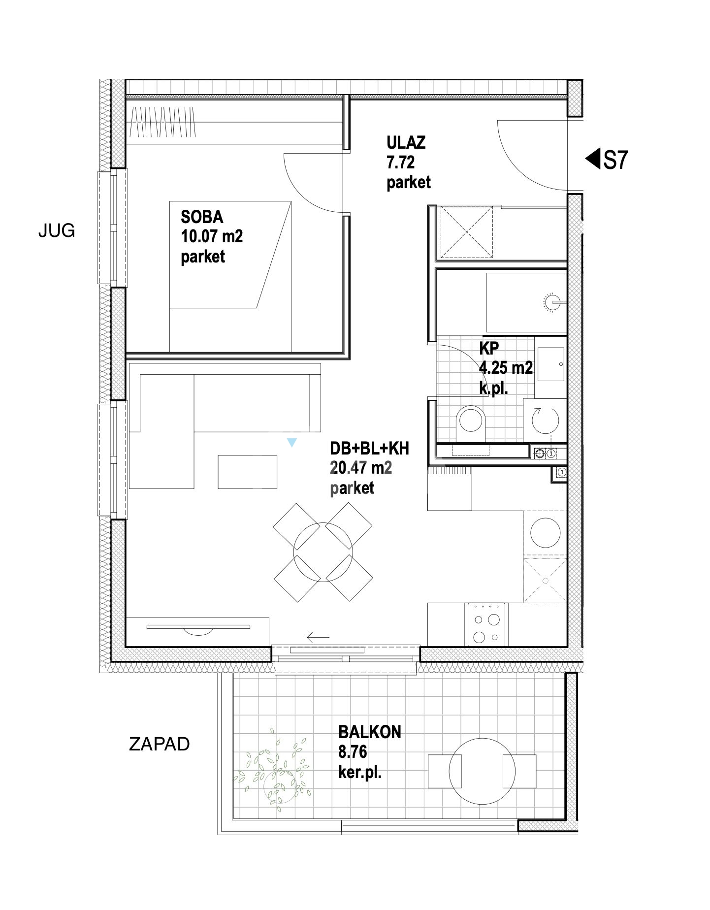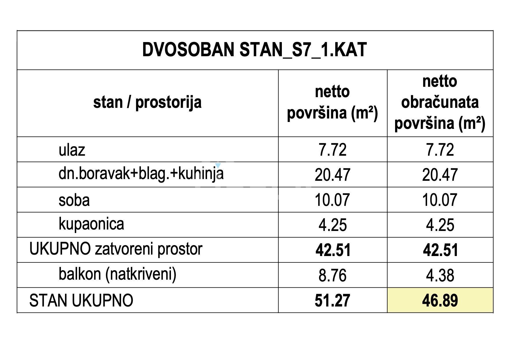 Prodaje se dvosobni stan s7 površine 48,49 m2 na 1. katu zgrade s liftom.