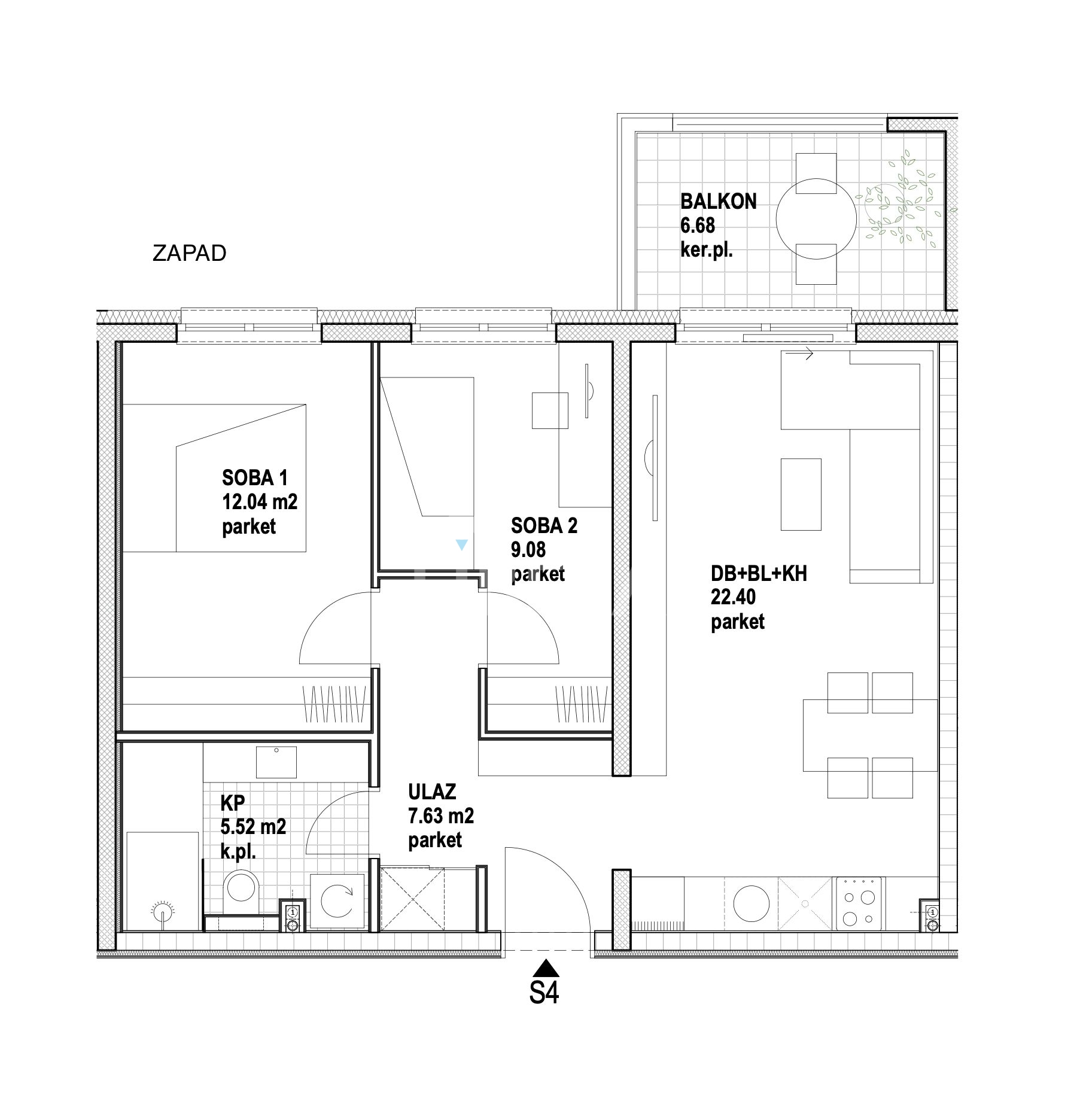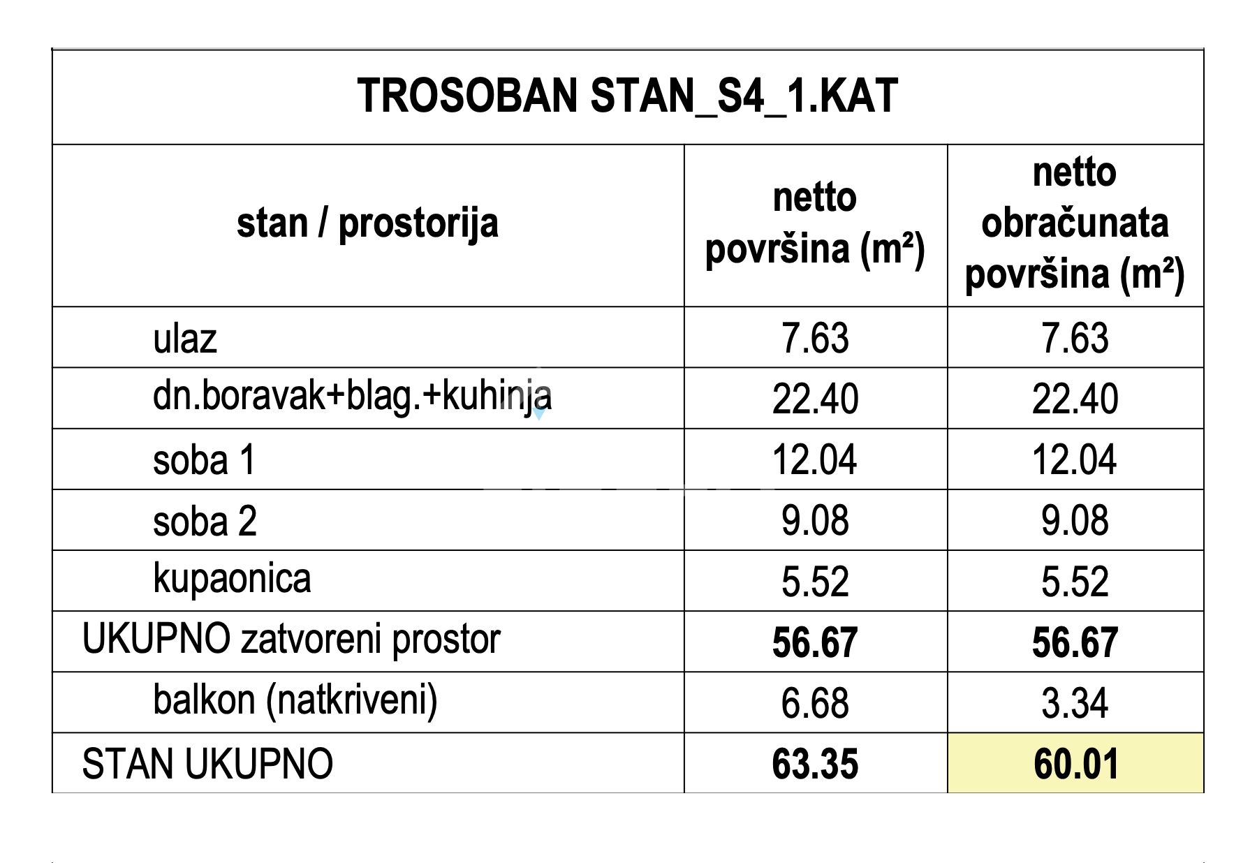 Prodaje se trosobni stan s4 površine 61,61 m2 na 1. katu zgrade s liftom.