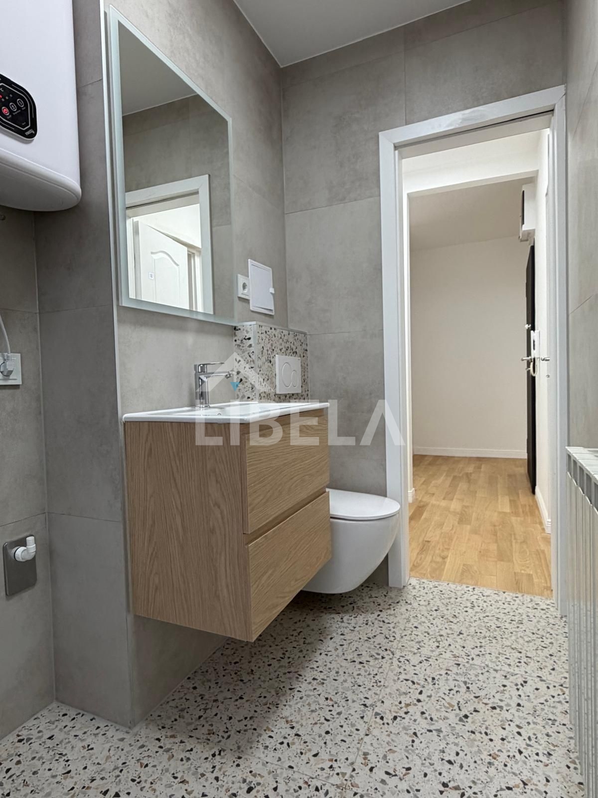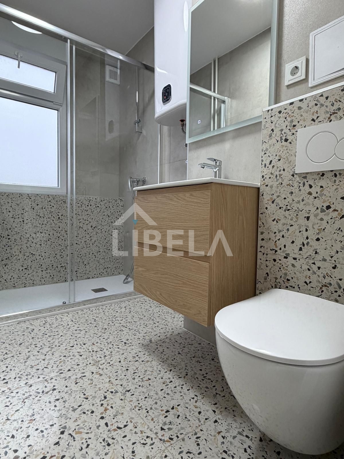 Prilikom adaptacije promijenjene su instalacije u cijelom stanu (struja i voda), postavljena nova protuprovalna vrata, PVC stolarija kao i sva nova sobna vrata, postavljen je višeslojni parket sa širokim bijelim lajsnama, potpuno nova kupaonica te je tako zamijenjen doslovno svaki zamjenjivi segment stana…