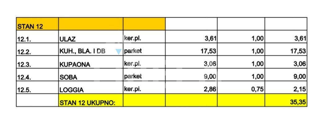 Prodaja stana na prvom katu objekta sa 19 stambenih jedinica, sastoji se od: predprostora, kupaonice, kuhinje, dnevnog boravka s blagavaonicom, loggie te 1 spavaće sobe.