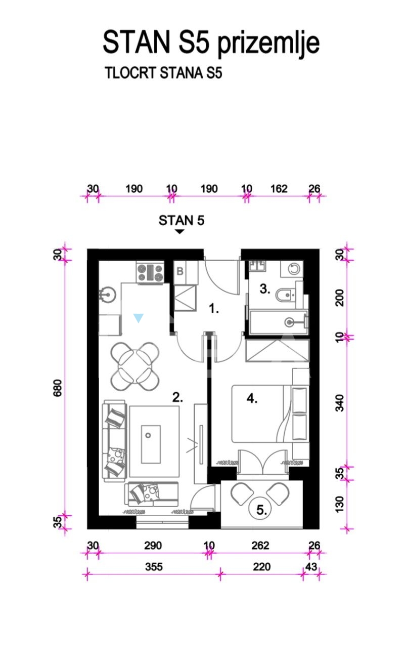 Prodaja stana u prizemlju objekta sa 19 stambenih jedinica, sastoji se od: predprostora, kupaonice, kuhinje, dnevnog boravka s blagavaonicom, loggie te 1 spavaće sobe.