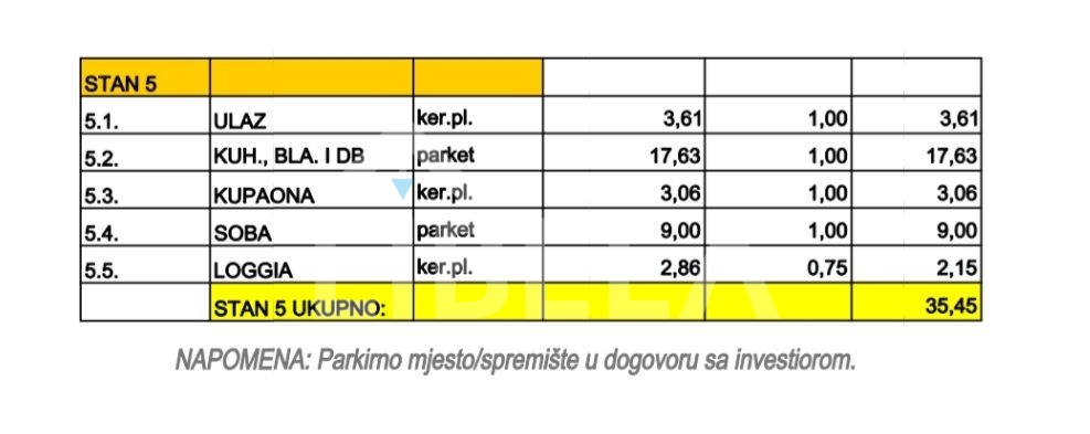 Uz stan je moguća kupnja garažnog parkirnog mjesta za 20.000 EUR. Također, moguća je kupnja i spremišta koja se nalaze na svim etažama, oko 3m2.